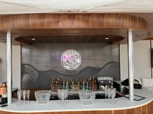 Step into a realm of luxury and dive into an immersive brand experience as you explore the yacht’s multi- level customer spaces. Relax on the flybridge, lounge comfortably on the sun deck, or enjoy a drink at the 360-degree feature bar in the main salon, surrounded by your favourite beverages. As you board the elegant deck, you’ll be transported to the French Riviera, greeted by an atmosphere of refined, understated luxury, an ideal setting to unwind and rejuvenate after the thrill of the track side action.
